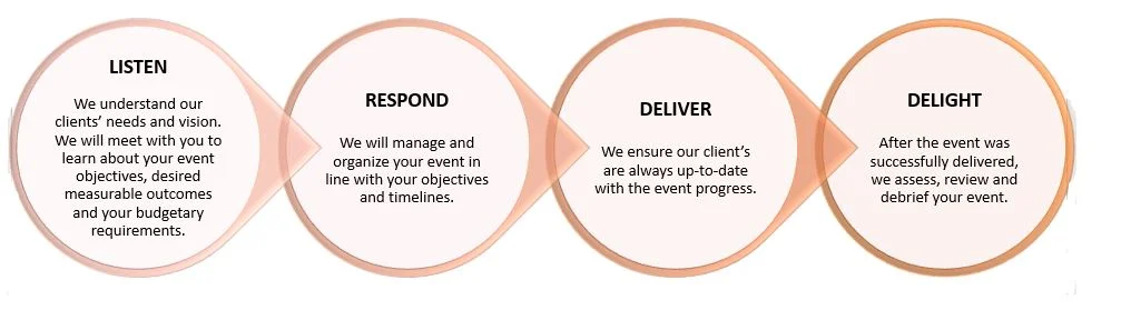 We have developed our process in order to ensure our clients' strategic goals and event visions are met and exceeded!